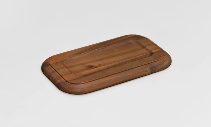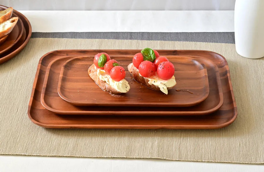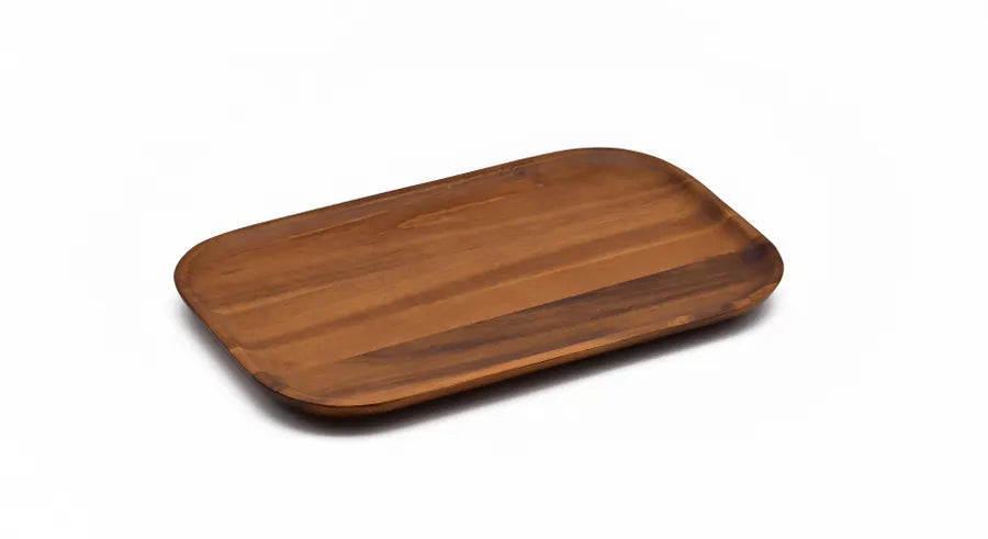シンプルで飽きがこないデザインを採用したアカシア材のトレイ。 フィンガーフードやスイーツなどをおしゃれに盛りつけることができます。