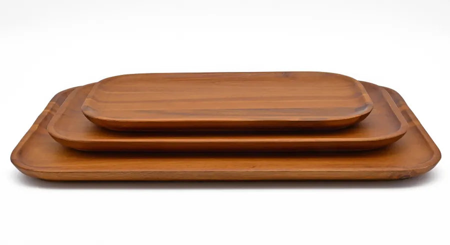 アカシアスタッキング長角トレイ 天然木 木製食器 ブラウン プレート トレー