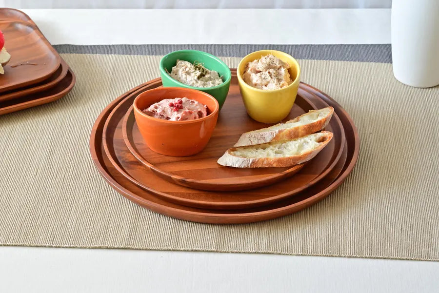 アカシアスタッキング丸トレイ 天然木木製食器 ブラウン プレート トレー