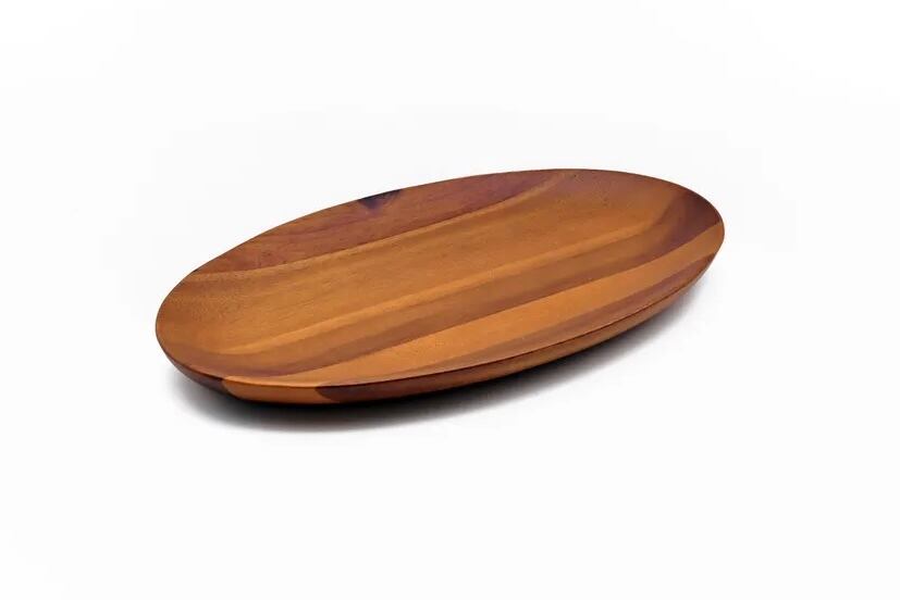 木製品では珍しいオーバル(楕円)形を採用した、アカシア材のプレート。 ワンプレート料理からスイーツまで、多彩な用途にご利用いただけます。