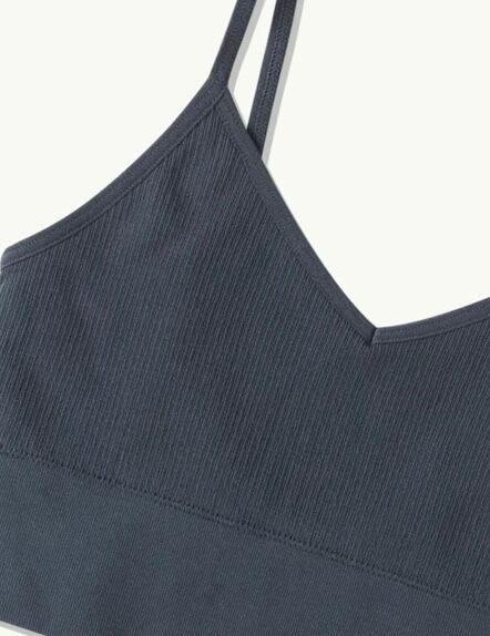 サステナブル、エコ、エシカル、快適、リラックス、ジム、ヨガ、運動、スポーツ、定番、人気、ノンワイヤー、パットつき、ブラジャー、チャコール、グレー、ブルーグレー、サイズ展開