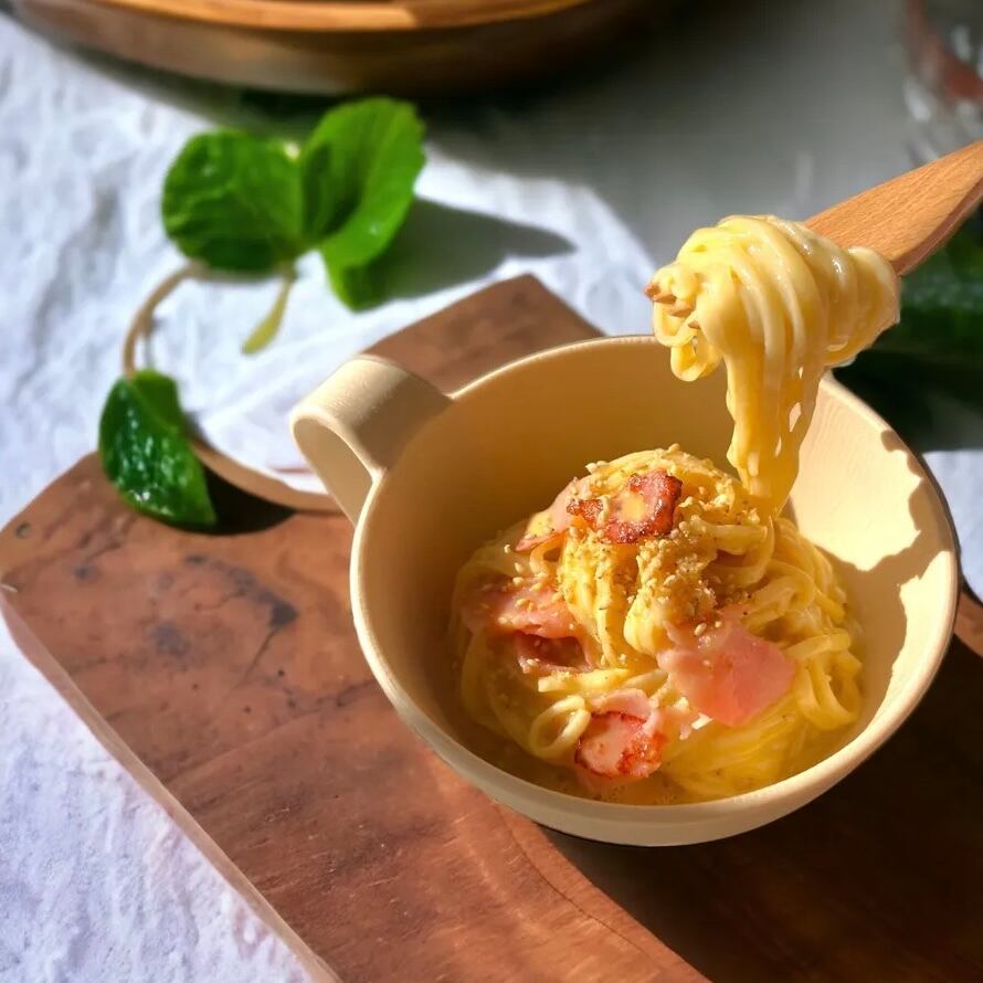 湿度や温度、時間を丁寧に調整しながら、2日かけてじっくり熟成させた「二段熟成」のノンフライ麺。 モチっとした弾力と、つるりとしたのどごしに仕上げました。 フォークでも食べやすい平麺で、お子さまの「ひとりでできた!」を応援します。 麺量は大人一人前。しっかり食べごたえがあり、取り分けの食事にもぴったりです。